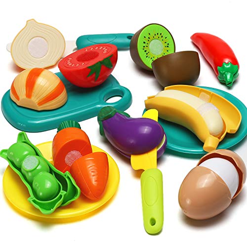 • Realistic Design: Match pieces together easily, which can be cut and played repeatedly. For children, fruits and vegetables are easy to cut.The “slicing” noise accompanying the cutting can bring endless fun to the children