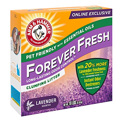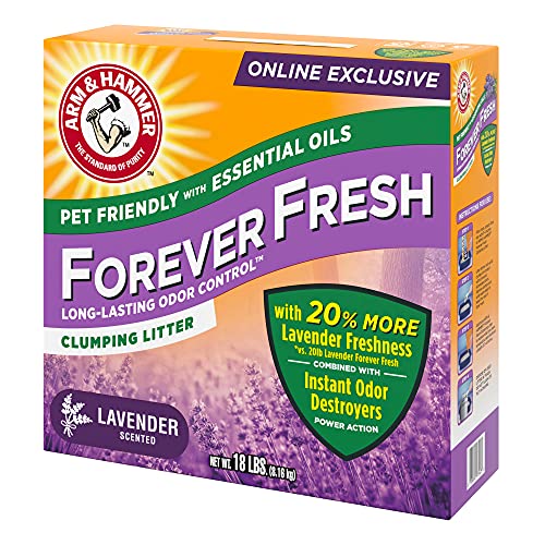 Details: ARM & HAMMER FOREVER FRESH Clumping Litter provides long-lasting odor control and lasting freshness. This odor-controlling cat litter is only available online—ready to be shipped directly to you. It’s convenient, new 18lb. size also delivers 20% more lavender freshness than our 20lb. size