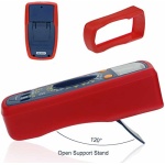 The grip of the multimeter is around the edge of the entire multimeter and a kickstand on the back so you don’t have to be holding the entire time when you want to use it. It can also be used to diagnose, assemble, and repair circuitry and wiring. Other features include a low battery indicator, continuity buzzer, and overload protection.