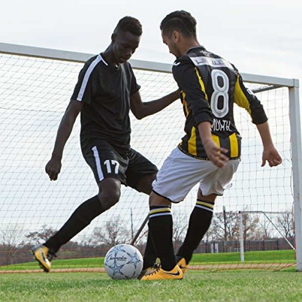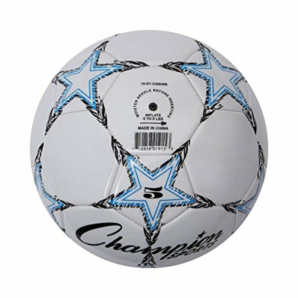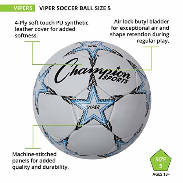 Details: Practice and play games in recreational leagues or gym classes with the Champion Sports Viper Soccer Ball. This size 5 soccer ball is designed with a TPU cover for exceptional softness, making heading, kicking, and blocking the ball easy and safe. Featuring an airlock butyl bladder and machine-stitched panels, this soccer ball is sure to retain its air and shape to hold up to regular use in both indoor and outdoor conditions. Ball ships deflated – pump not included.