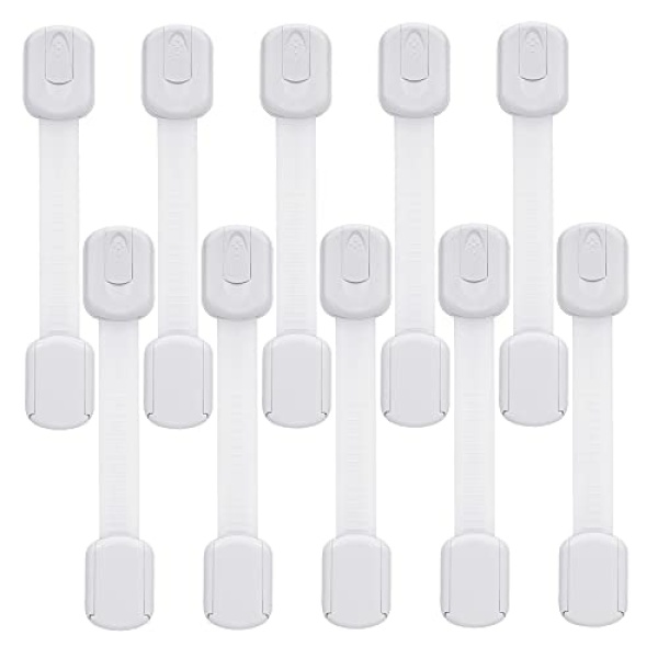 Child Safety Cabinet Locks – (10 Pack) Baby Proofing Latches to Drawer Door Fridge Oven Toilet Seat Kitchen Cupboard Appliance Trash Can with 3M Adhesive – Adjustable Strap No Drill No Tool