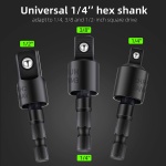 - Multifunction: 3-piece power drill sockets adapter sets, 360° rotatable hex shank impact driver socket adapter used in the installation of pneumatic screwdriver, electric screwdriver, pneumatic drill, manual screwdriver and other installation for the hexagonal tool. It is a good accessory for conversion. For universal socket, impact adapter and reducer set, universal joint set, socket adapter and drive reducer set, drive impact socket extension bar set, drive impact socket set