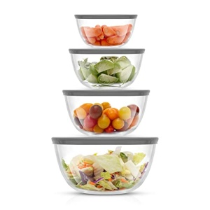 JoyJolt Kitchen Mixing Bowls – 8pc Glass Bowls with Lids Set – Neat Nesting Bowls – Large Mixing Bowl Set Batter Bowl – Cooking Bowls – Storage Bowls with Lids and Big Salad Bowl with BPA-Free Lids