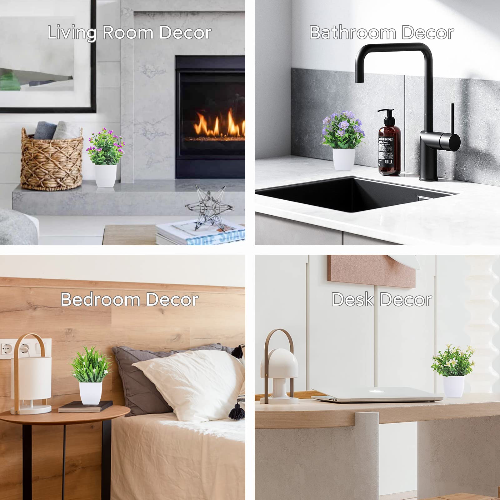 Home Home & Kitchen Der Rose 4 Packs Small Fake Plants Mini Artificial Faux Plants with Flowers for Home Room Farmhouse Bathroom Decor Indoor