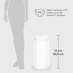 • LASTING VALUE: This compact diaper pail can hold up to 50 newborn-sized diapers! The pail’s composition allows easy cleaning without worrying about rust.