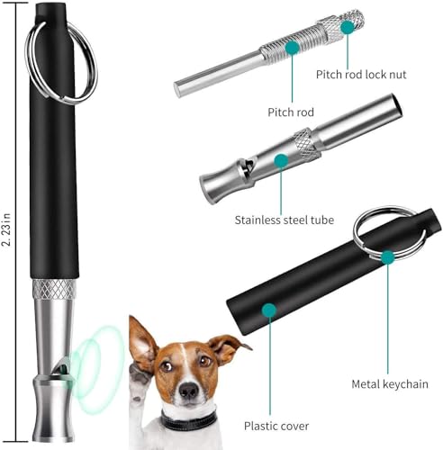 - 【HOW TO TRAIN YOUR DOG?】: Dog Whistle, different dogs respond to different frequencies. Dog training whistle has a nut and screw that would adjust thebfrequency when turned. Notice your dog’s reaction to each setting until your dog exhibits the strongest reaction. Please keep your whistle command consistent, when your dog does it right, give him a snack reward, approach to make your dog a listening and obedient friend.