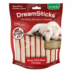 Details: DreamBone chews have all the benefits of a rawhide chew…without the rawhide. No-rawhide DreamBone chews are made with real chicken, beef, bacon and cheese or sweet potato and wholesome vegetables for a scrumptious taste dogs can’t resist! No-rawhide DreamBone DreamSticks chews for dogs are made with real chicken and wholesome vegetables for an irresistible taste dogs dream about. Enriched with vitamins and minerals, these chews are a healthy alternative to rawhide. Treat your pup to these highly digestible and 100 percent delicious chews. DreamBone DreamSticks promote healthy teeth and gums through the natural action of chewing, making them a treat both you and your dog can love. Give your dog 1 to 2 DreamBone DreamSticks per day. Always supervise your pup during chewing activity and provide access to fresh, clean water. These chews are intended for intermittent or supplemental feeding only. Store in a cool, dry place. After opening, reseal or store in an airtight container to preserve freshness.The experts at DreamBone brand want you to have healthy, happy dogs. We know that your dog is more than a pet – they’re family. Chewing is an essential, healthy and enjoyable activity for dogs. Dog chews help keep teeth clean, jaws strong and are mentally stimulating to help prevent boredom and destructive behavior. DreamBone chews help satisfy a dog’s natural chewing instinct.