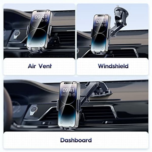 Eyemay Car Phone Holder Mount – [ Bumpy Roads Friendly ] Phone Mount for Car Dashboard Windshield Air Vent 3 in 1, Hand Free Mount for iPhone 14 13 12 Pro Max Samsung All Cell Phones