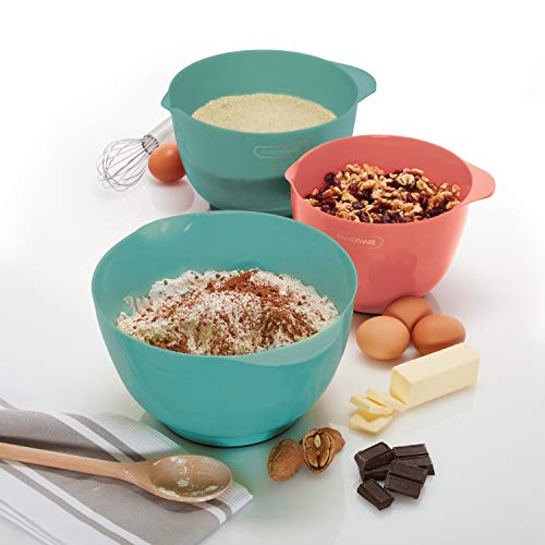 Farberware Professional Plastic Mixing Bowls, Set of 3 (Aqua Coral),1.9 liters