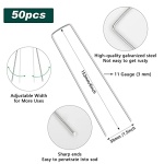 • 【MATERIAL】Our landscape pins are made of heavy duty galvanized steel. Premium quality makes them durable and can be reused many times. Our landscape fabric stakes are made of anti-rust durable galvanized steel. It is so strong to insert into the ground with adjustable width.