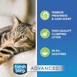 Details: Fresh Step Advanced Clumping Cat Litter guarantees 10 days of odor control and is available in the Gain Original scent that you love in a 99.9% dust-free formula. This advanced clumping cat litter with Ammonia Block Technology is our most advanced odor protection formula yet. Fresh Step Advanced cat litter starts fighting odors on contact to control odor longer (vs. Fresh Step Gain regular formula cat litter). Fresh Step Cat Litter uses the power of Febreze to block litter box odors with activated charcoal to guarantee 10 days of odor control. Made with a cat-friendly formula, this 99.9% dust-free formula helps keep surfaces cleaner and air clearer with your cats health and happiness in mind. A paw-activated Gain Original fragrance is released every time your cat uses the litter box, providing fresh scent as needed for your home. Certain trademarks used under license from Procter & Gamble Company or its affiliates.