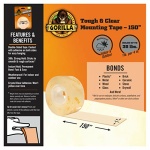 Details: Gorilla Tough & Clear Mounting Tape (pack of 1) is a clear double sided tape that mounts in an instant, for a long-lasting, weatherproof bond. The crystal clear tape won’t yellow over time, and holds up to 38 pounds. Gorilla Tough & Clear Mounting Tape is perfect for indoor and outdoor projects and sticks to smooth and rough surfaces. Completing DIY projects are easy with this single pack of tough, strong double sided tape. Mount, build, and repair for a perfect finish, every time. Adhesive tape for wall hanging, bonding odd objects, or mounting heavy objects. Directions: Apply tape to back of object vertically, allowing for even distribution of weight. Avoid touching surfaces of the tape. Note: Apply 4” of tape per 1lb of weight. Cut the tape and press to secure the tape to object. Remove clear liner and align objects to desired placement. Press firmly, as heavy duty tape conforms to the surface and creates a strong, Permanent bond. Once Heavy Duty Mounting Tape is used to mount an object, it is meant to be held in place permanently, and not be removed. Double sided tape for walls and windows alike. Double sidestick tape sticks to almost any indoor or outdoor surface. Follow the Gorilla link at the top of this page to see other quality products from the Gorilla Glue Company.APPLICATION TEMPERATURE – above 50° F. SERVICE TEMPERATURE – continuous- up to 194° F intermittent- up to 302° F. STORAGE TIPS – Store in a cool, dry location. 64° to 72° F, 30 to 70% RH.