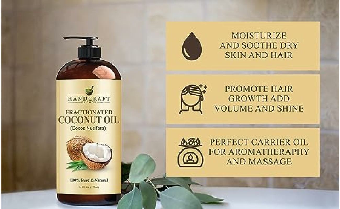 Handcraft Blends Fractionated Coconut Oil – 16 Fl Oz – 100% Pure and Natural – Premium Grade Oil for Skin and Hair – Carrier Oil – Hair and Body Oil – Massage Oil – Hair Tonic
