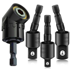 CIGOTU Right Angle Drill Adaptor,4-in-1 Impact Drill Bit Extension,360° Rotatable 1/4 3/8 1/2″ Impact Grade Socket Adapter Set,105 Degree Angle Screwdriver Drill Bit for Household Workplace Industry