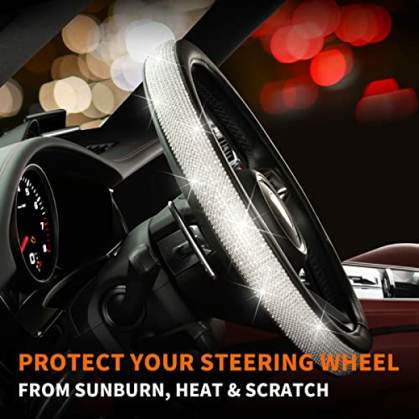• 360° PROTECTION: HOTOR steering wheel cover with cute appearance can not only decorate your car with shining rhinestones but also securely protect your car steering wheel from exterior damages like sunburn, heat, and scratches.