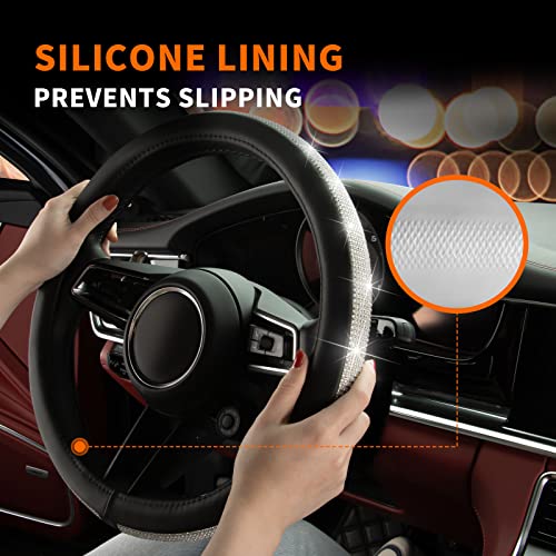 HOTOR Steering Wheel Cover – Cute Bling Car Steering Wheel Cover for Women & Girls with Sparkly Diamond Rhinestones, Gorgeous Bling Car Accessory with Anti-Slip Lining for Diverse Cars (14.5-15 inch)