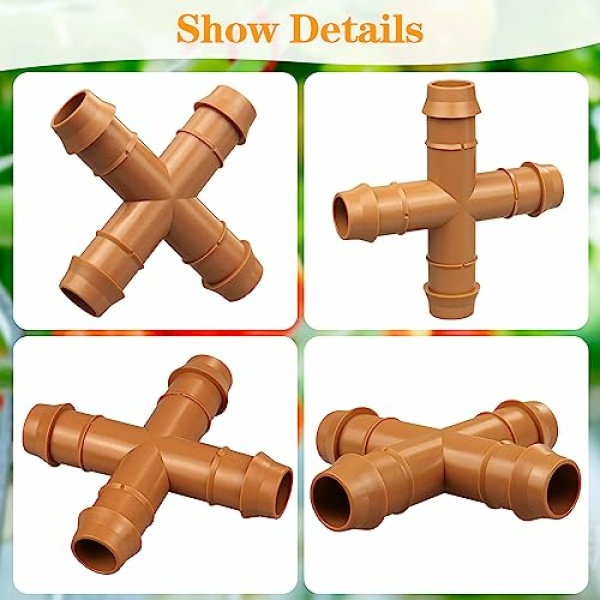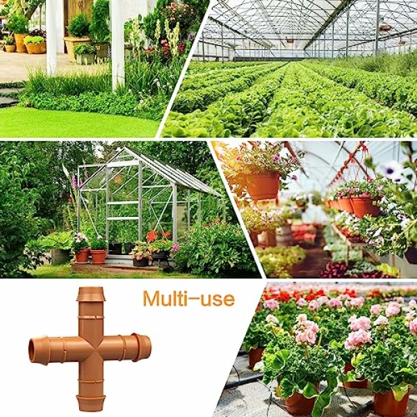 • 【PACKAGE LIST】It comes with 14 pieces barbed 4 way connectors, which let you connect your irrigation systems as you wish.