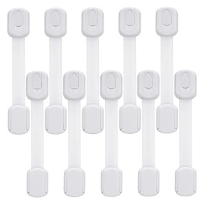 Child Safety Cabinet Locks – (10 Pack) Baby Proofing Latches to Drawer Door Fridge Oven Toilet Seat Kitchen Cupboard Appliance Trash Can with 3M Adhesive – Adjustable Strap No Drill No Tool