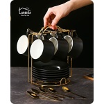 • Cappuccino Cups With Stand: Lareina large cappuccino cup set of 6 is sold with a metal stand to organize the cups and saucers after use. It helps greatly to get rid of the mess in your kitchen and keep it tidy and well-organized way. The stand makes moving the cups safer and easier