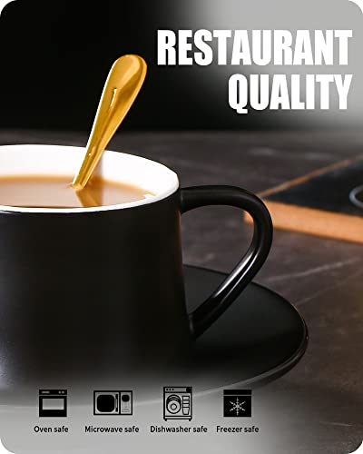 Home Home & Kitchen Lareina Porcelain Cappuccino Cups with Saucers, Spoons and Cup Stand – 7 Ounce Ceramic Coffee Cups for Americano, Latte, Cafe Mocha and Tea – Set of 6, Black