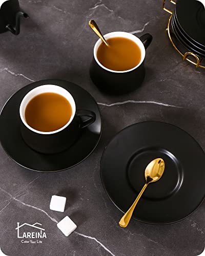 • Premium Gift: Lareina tea cup set is stylish and functional. Sending your loved ones a set of fantastic coffee mugs with saucers for Souvenir, Christmas, Housewarming, Wedding party, Tea Party, Thanksgiving, and Bridal Power. They will appreciate you for this awesome present