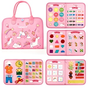 Busy Board for Toddlers Boys Girls Montessori Toys for 2 Year Old – 7 in 1 Preschool Learning Activities Toddler Travel Toys for Ages 2-4 with Life Skill, Alphabet, Number, Shape, Color,Animal,Weather