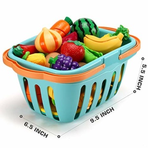 70 PCS Cutting Play Food Toy for Kids Kitchen, Pretend Fruit &Vegetables Accessories with Shopping Storage Basket, Plastic Mini Dishes and Knife, Educational Toy for Toddler Children Birthday Gift