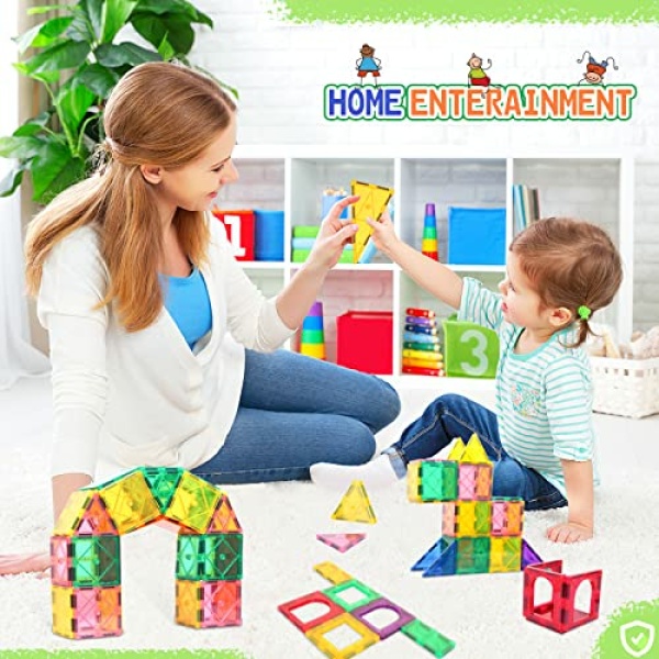 • MEANINGFUL TOYS FOR TODDLER KIDS – The magnetic tiles set helps toddlers to recognize colors, number graphing, build patterns, and shape puzzles. A building toy for kids ages 4-5 to build houses, animals, and simple addition sentences. Science toys for kids ages 6-8, magnetic principles, gravity, and structure.