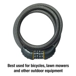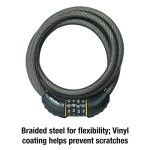 • DURABLE DESIGN: Cable is made from braided steel for strength and flexibility; Rust-resistant lock and vinyl-coated cable provide superior weather and scratch resistance