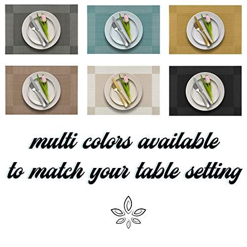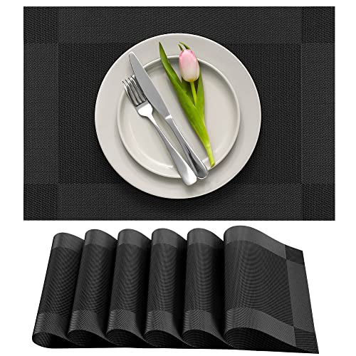 More Décor Dining Table Placemats, Washable Heat-Resistant PVC Vinyl Table Mats for Dining Room and Kitchen, Anti-Slip – Set of 6 -Black