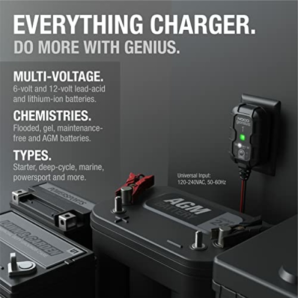 • Do more with Genius – Designed for 6-volt and 12-volt sealed lead-acid automotive, marine, RV, powersport, and deep-cycle batteries, including flooded, gel, AGM, SLA, VRLA and maintenance-free, plus lithium-ion batteries (lifepo4).