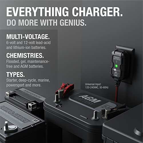 Home Automotive & Car Care NOCO GENIUS1, 1A Smart Car Battery Charger, 6V and 12V Automotive Charger, Battery Maintainer, Trickle Charger, Float Charger and Desulfator for Motorcycle, ATV, Lithium and Deep Cycle Batteries