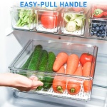 - ★FOOD GRADE MATERIAL: The fridge organizer is made from durable food-grade PET, BPA-free, which can effectively resist stains & dust. Adopts a highly transparent design, allowing you to easily find what you want & keep vegetables and fruits fresh.