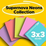 Details: Ideas are out of this world with the electric colors of the Post-it Super Sticky Notes Supernova Neons Collection. Whether jotting down your daily to-do’s, brainstorming big ideas, studying or setting reminders, colors and ideas are always brighter together. These sticky notes feature 2X the sticking power. They also stick and re-stick – allowing you to move your notes with you throughout your day. They’re ideal for walls, doors, windows and other vertical surfaces, and like all Post-it Notes, they stick securely yet remove cleanly without damage. Keep your ideas across your notebooks, classroom books, calendars or other documents. No tape or tacks are needed with adhesive notes, saving you money and time on office products or school supplies. A great memo pad, these are ideal for using for notes or reminders to yourself or others. Post-it Super Sticky Notes are the perfect solution for shopping lists, reminders, notes on computer screens, time tracking, to-do lists, marking cables, color-coding documents, reminding kids to do chores, storyboarding, scratch paper and agile processing. Each notes sheet is approximately 3 in. x 3 in., with 70 sheets per pad and 24 sticky note pads per pack. These colorful sticky notes include colors from the Supernova Neons collection including aqua, lime, bright pink, coral pink and lilac. All Post-it Notes are sourced from certified, renewable and responsibly managed forests, and all Post-it Notes are recyclable, so you can recycle them when they are no longer needed.