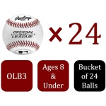 Details: The Rawlings Olbs3 Recreational Use Baseballs are designed with a solid cork and rubber center with a synthetic leather cover to create an easy grip in addition to major league seams. These 24 baseballs come in a convenient, durable white bucket sporting the Mlbs logo and the iconic Rawlings patch. They are suitable for recreational use of ages 8 and under. They are official size and weight and are the No.1 choice of leagues, coaches, parents, and players in North America.
