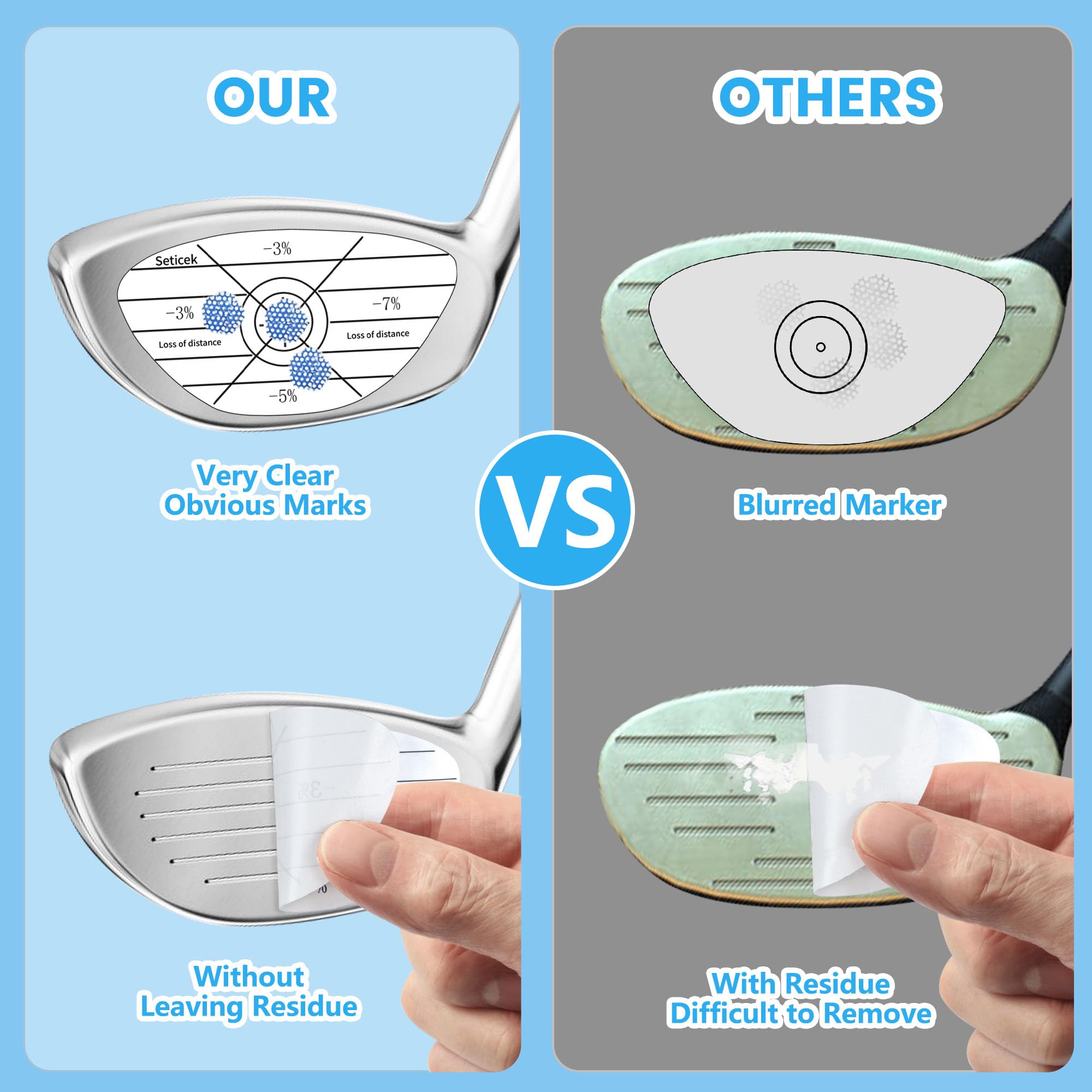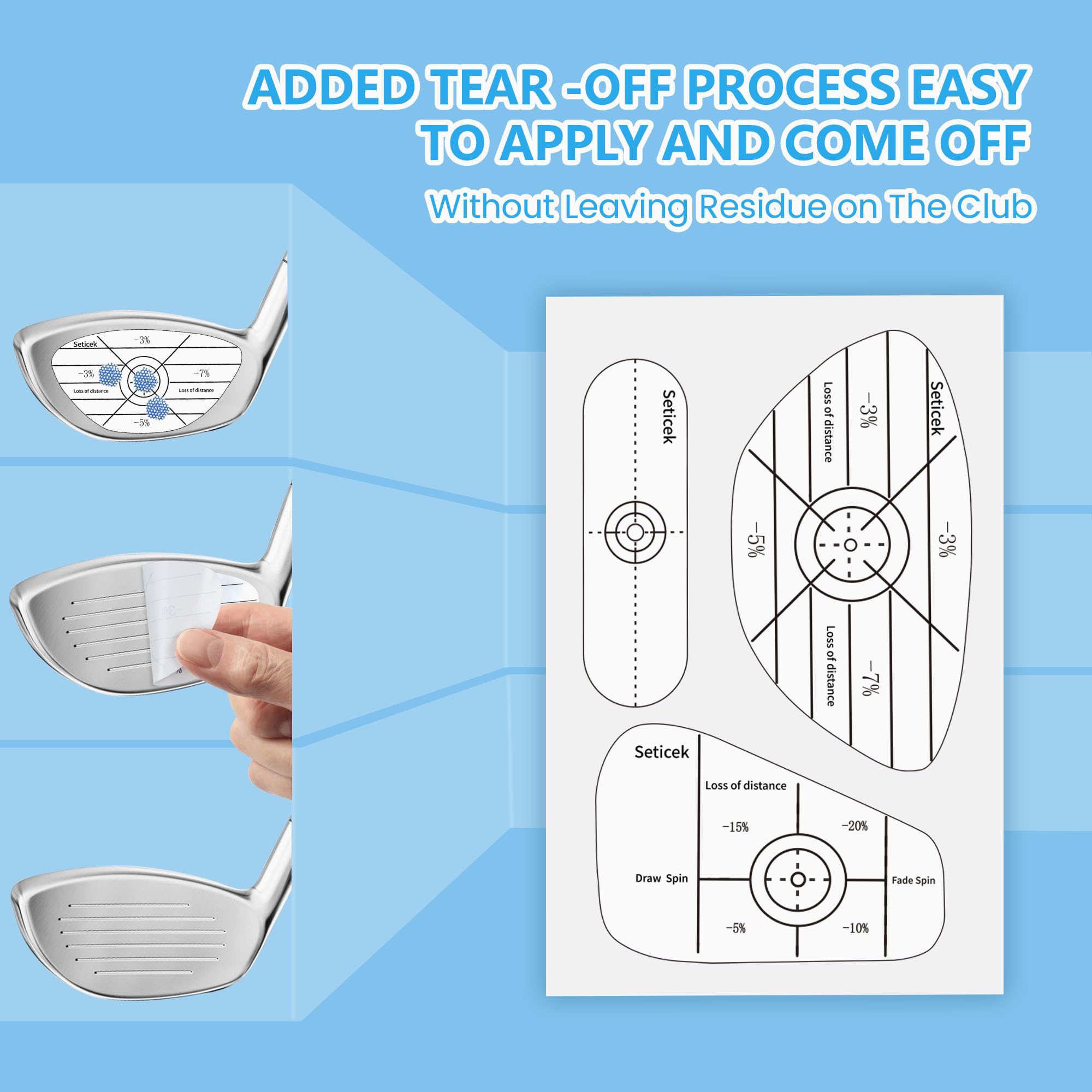 Seticek Golf Impact Tape Set 300Pcs, Self-Teaching Sweet Spot and Consistency Analysis, Golf Club Impact Stickers for Woods Irons and Putters Each 100 Pcs,Useful Training Aid Improve Ball Striking