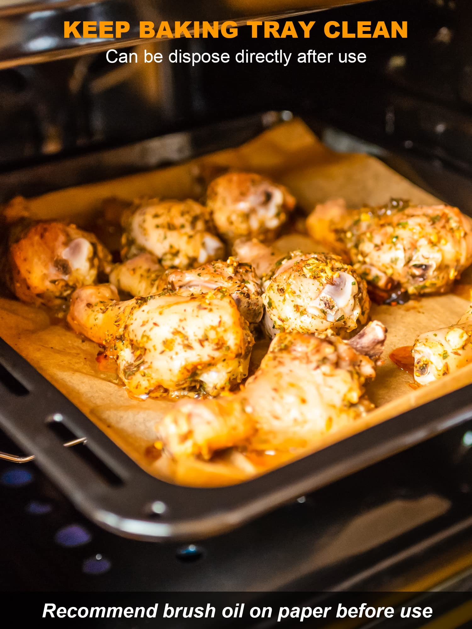 • Food-grade 200 pcs parchment paper: Includes 200 pcs of Unbleached, non-toxic, food grade baking sheets for baking, grilling, frying and steaming, can resist temperature up to 450°F