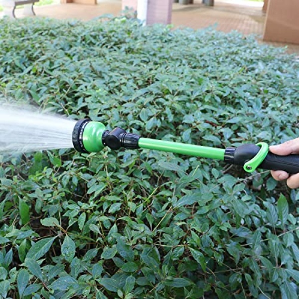 • 180 DEGREE PIVOTING HEAD IMPROVES EFFICIENCY AND VERSATILITY – This watering wand features a 180 degrees rotating head which allows you to adjust the angle of this head to change the flow direction. With it, you can easily obtain precise angles for handling a variety of tasks, such as a comfortable shower angle when watering overhead plants without stretching, a nice angle when moisturizing the roots of the plants without crouching, and a useful angle when washing cars.