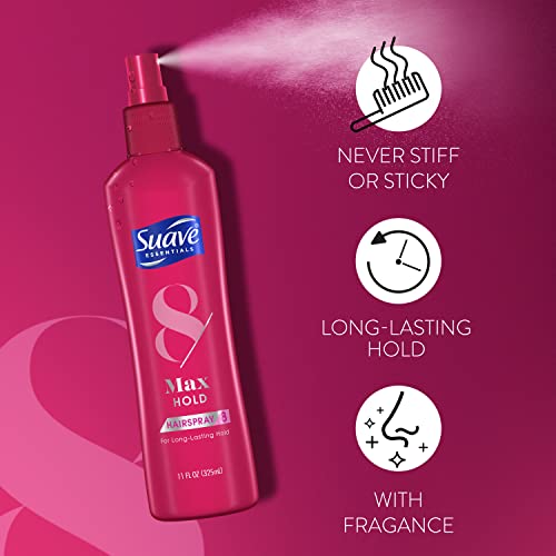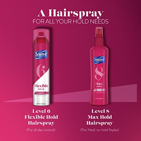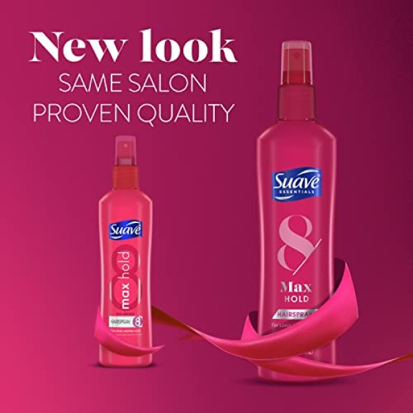 • Suave Max Hold Non-Aerosol Hair Spray has a vitamin and protein-enriched formula