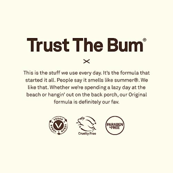 Details: TRUST THE BUM. What does that mean? It means trust us, the ones who live on the beach and need products that work on the most intense days in the sun. The simple truth is, when you make products to protect the ones you love, you make ‘em better.