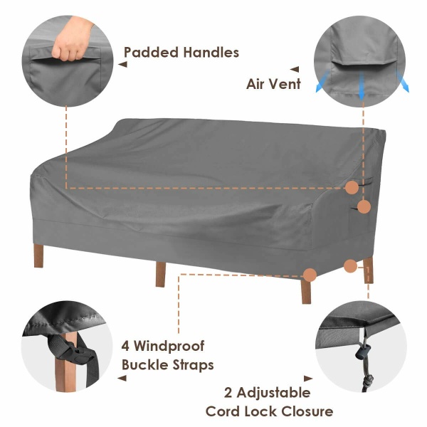 • Maximum Protection:Heavy Duty Outdoor Sofa Covers are made of 600D polyester oxford fabric and PVC layer which is weather-resistant, waterproof & dust-proof.Maximally protect your patio sofa from outdoor elements like sun, rain, winds, hailstorms, bird droppings etc.