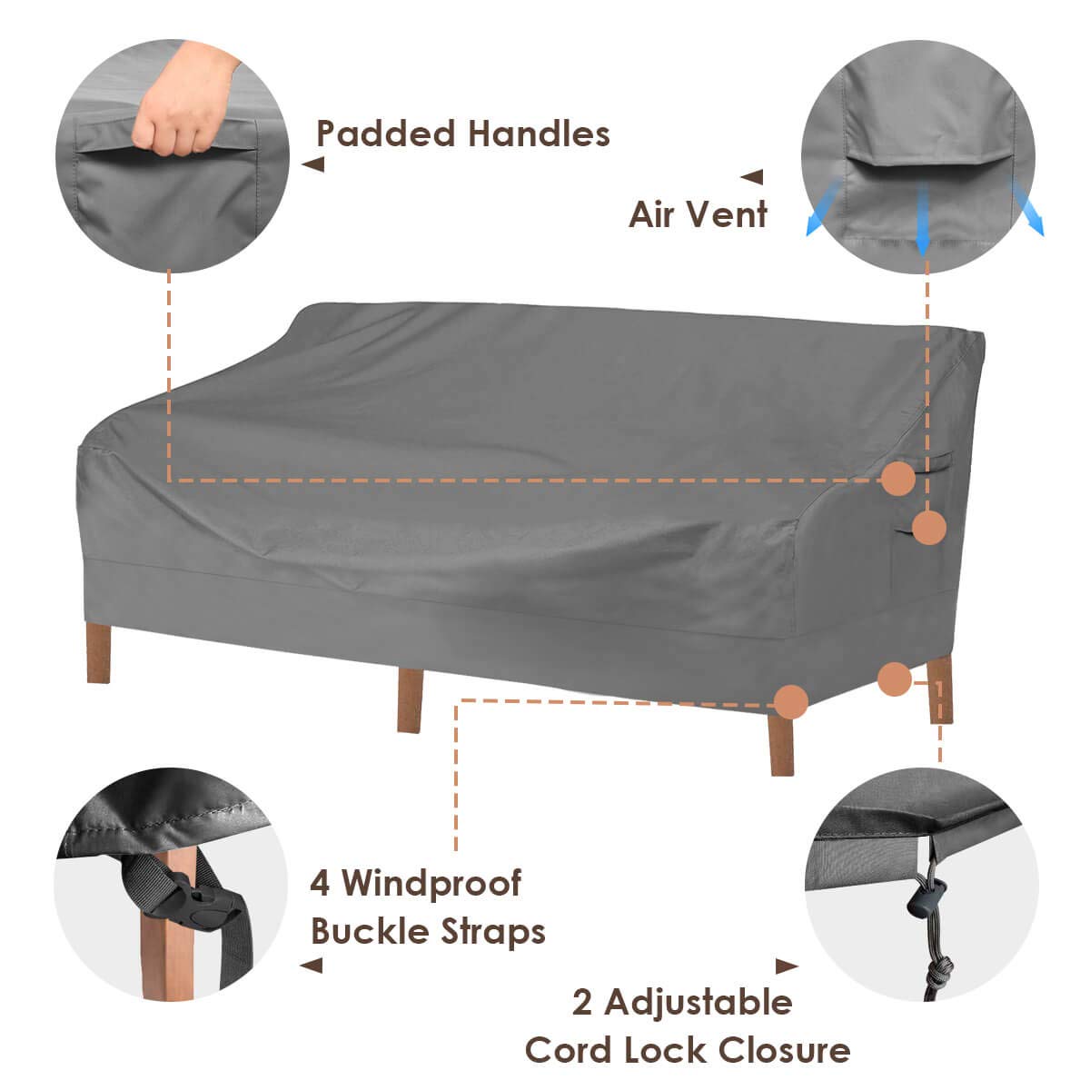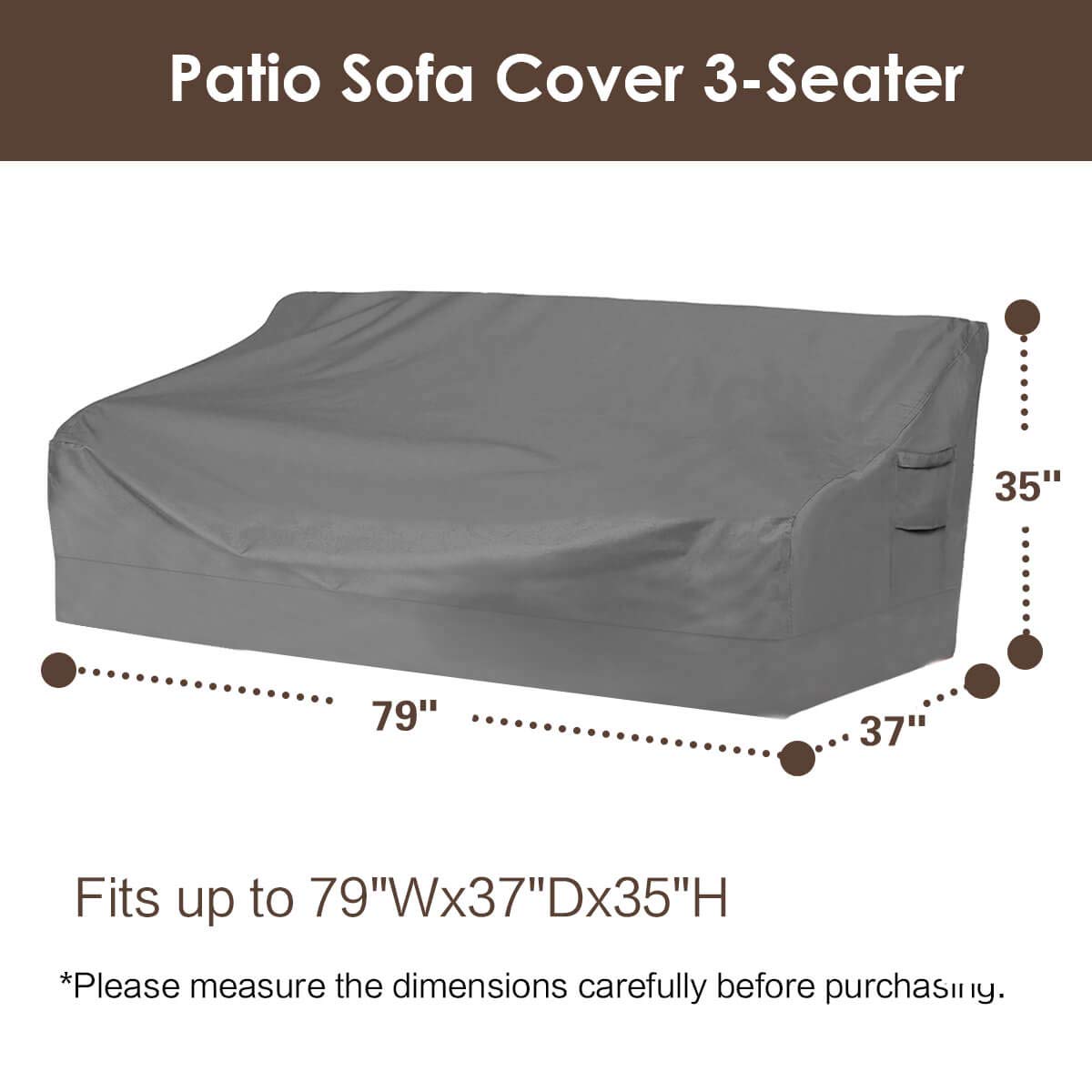 Vailge Heavy Duty Patio Sofa Cover, 100% Waterproof 3-Seater Outdoor Sofa Cover,Lawn Patio Furniture Covers with Air Vent and Handle,79″ Wx 37″ Dx 35″ H,Grey