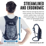 • Multiple Storage Options: Vibrelli’s hydration backpack design has intelligent storage options and pockets without being bulky